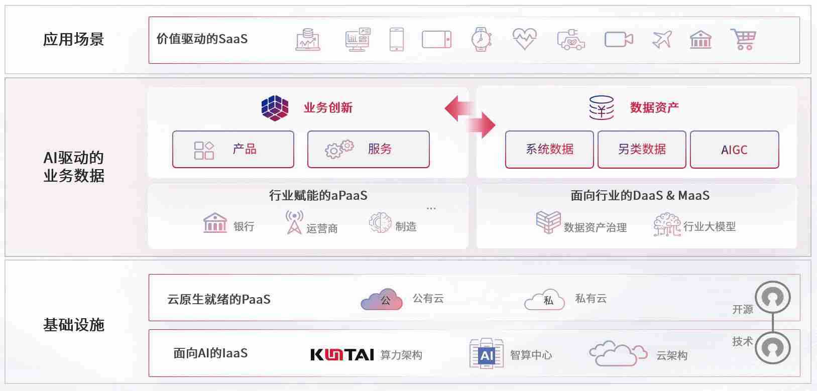 数字时代,,,围绕企业数字化转型的关键要素,,,,GGPAY钱包数码开创性的提出数云融合战略和技术体系框架,,着力在云原生、、、、数字原生、、、、AI原生和信创产业上架构产品和服务能力,,,,为处在不同数字化转型阶段的快消零售、、、汽车、、、金融、、、医疗、、、、政企、、、、教育、、、、运营商等行业客户提供泛在的敏捷IT能力和融合的数据驱动能力,,,构建跨界融合创新的数字业务场景和新业务模式,,,助力企业级客户建立面向未来的核心能力和竞争优势,,,全面推动社会的数字化、、、智能化转型升级。。。